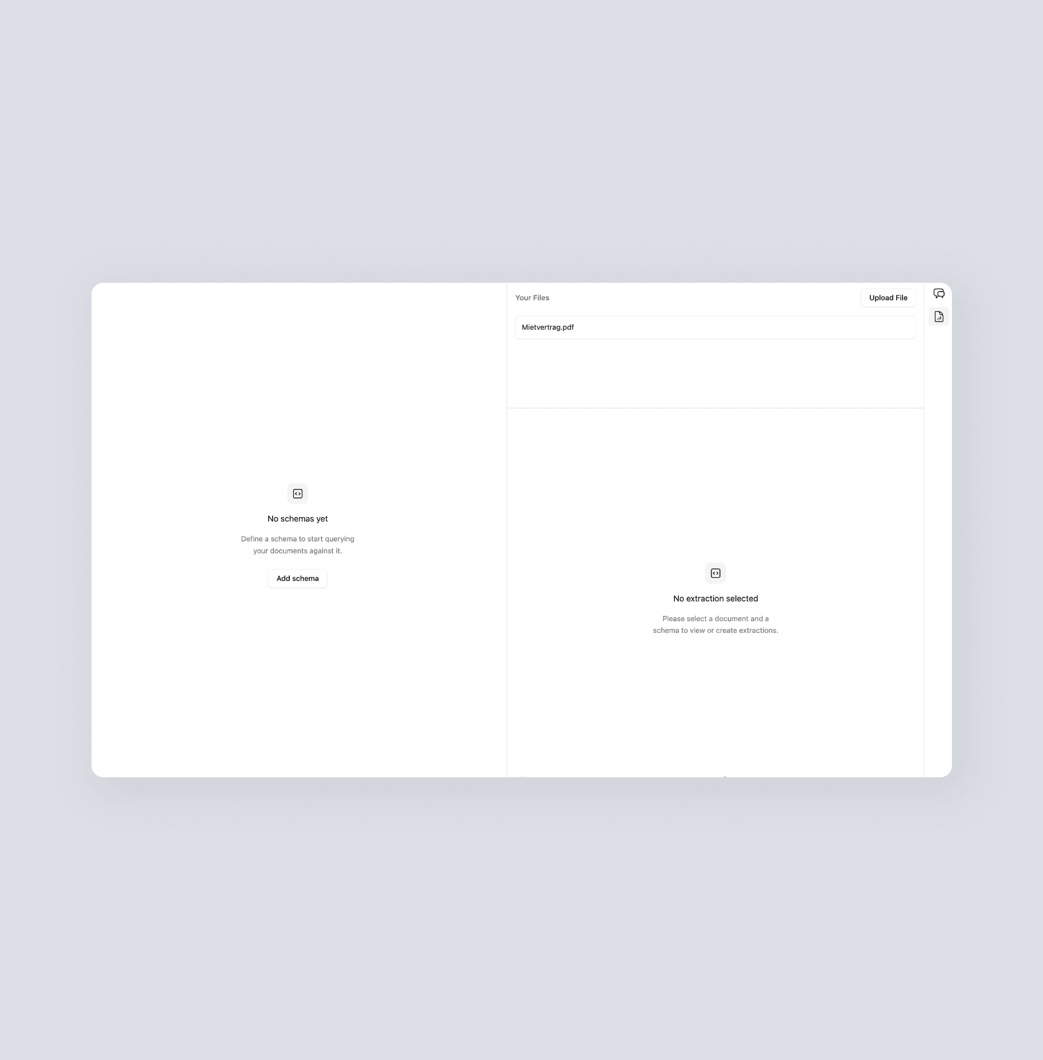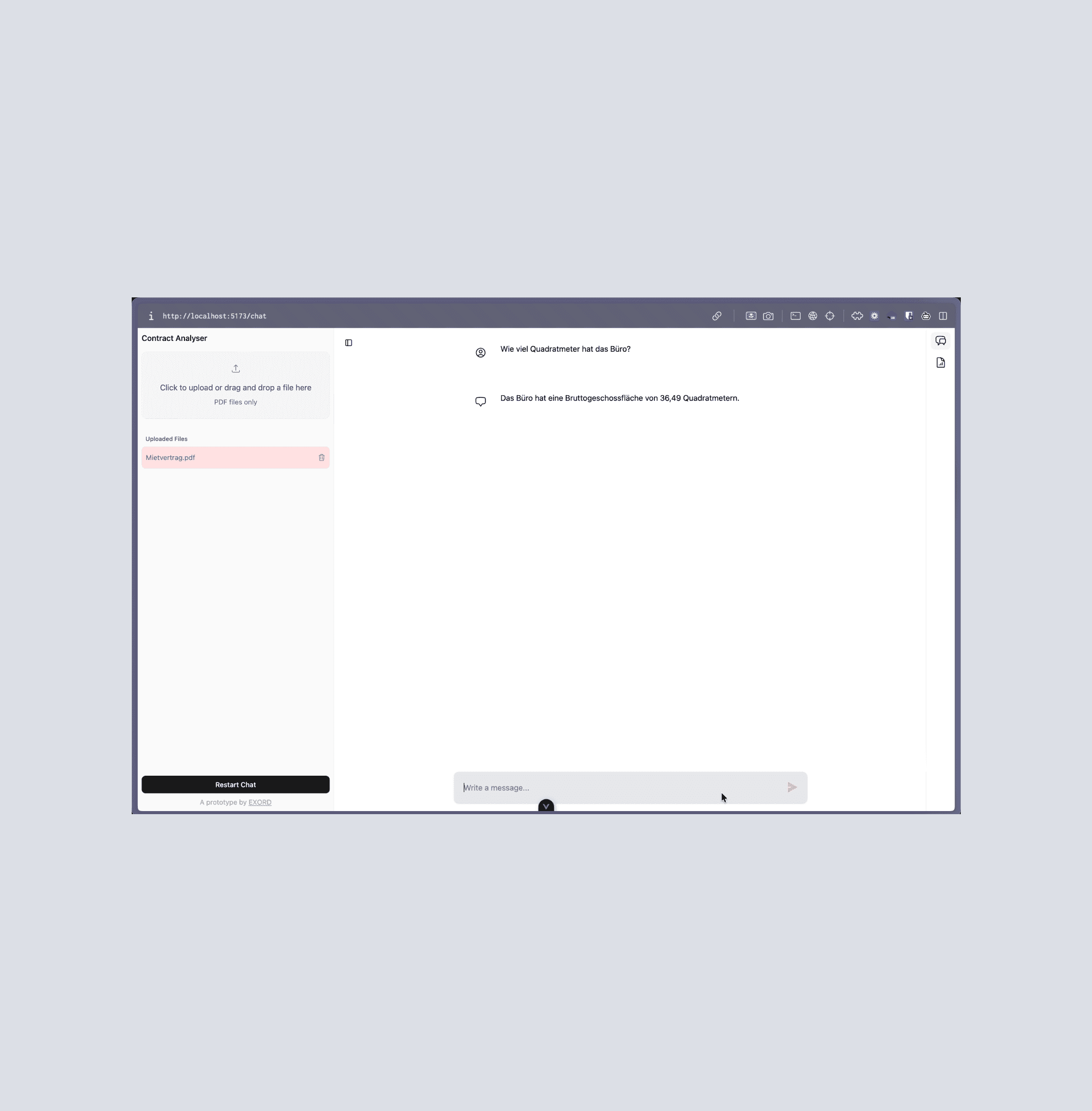 In diesem Projekt entwickelten wir eine KI-gestützte Plattform zur strukturierten Verarbeitung juristischer Dokumente, mit Fokus auf Verträge. Fachanwender können individuelle Schemas definieren, nach denen Dokumente automatisiert analysiert werden. Eingescannte Verträge werden verarbeitet, relevante Metadaten entlang des definierten Schemas extrahiert und anschließend in ein RAG-System überführt.